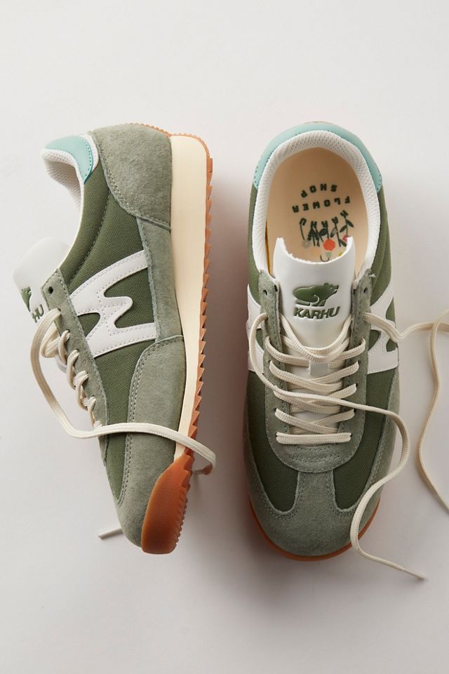 Make a cool, casual statement with these sleek sneakers from Karhu, featured in a slip, tapered design with suede uppers, contrasting leather details, and finished with the brand’s signature Air Cushion midsole.
