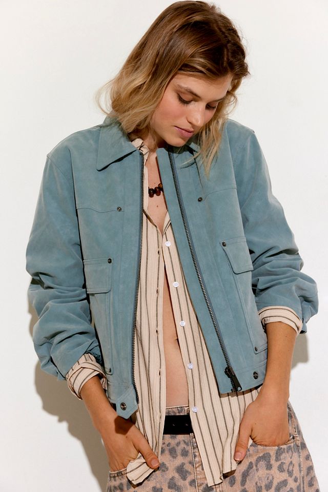 D'un cool sans effort à tous les égards, cette veste d'inspiration vintage de We The Free se caractérise par une silhouette en daim végan doux et carrée avec des manches cloche larges pour un look unique.