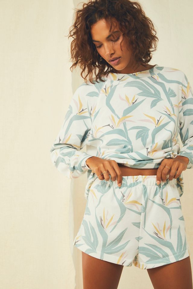 So comfy lounge shorts from Wildfox featured in a tropical birds of paradise pattern with a pull-on style and relaxed fit.