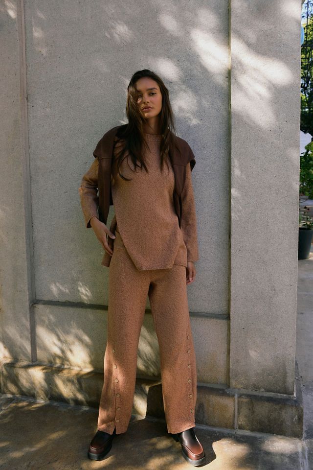 Button accents add extra detail to this sweater set from free-est, featuring an easy mock-neck pullover and wide-leg pants for effortless wear.