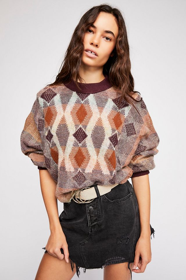 Super soft knit sweater featuring a diamond pattern.