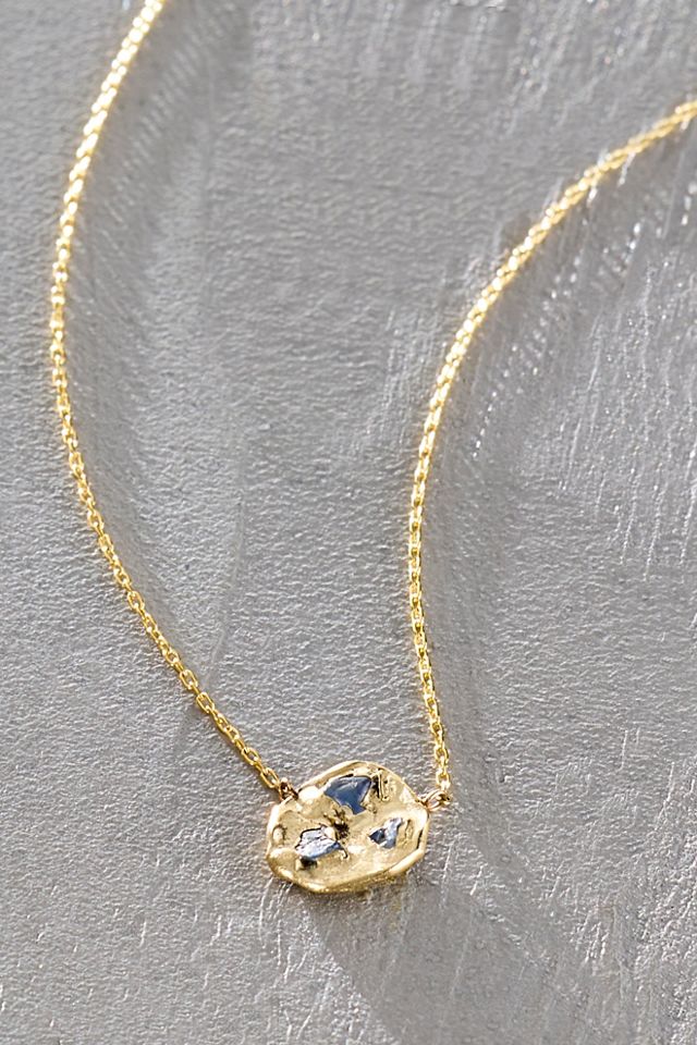 Inspired by the boundless beauty of the sky, this handmade gold pendant necklace features sapphires embedded in gold and suspended from a delicate gold chain.