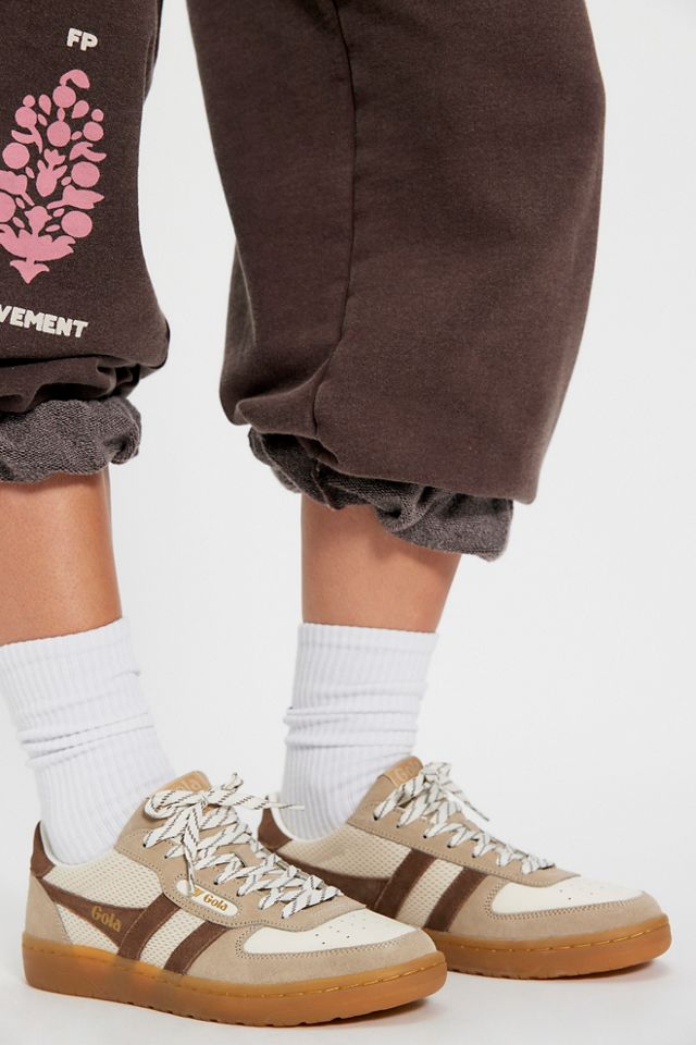 A classic style reimaged with mesh paneling, these vintage-inspired sneakers from Gola feature hiking-style laces, leather uppers, suede overlays, and their classic gum rubber sole for a playful, patterned twist on a staple shoe.