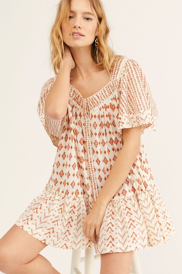 Sweet and special blouse featured in a gorgeous print fabrication with square neckline and dramatic ruffled bottom hem in a longline silhouette.