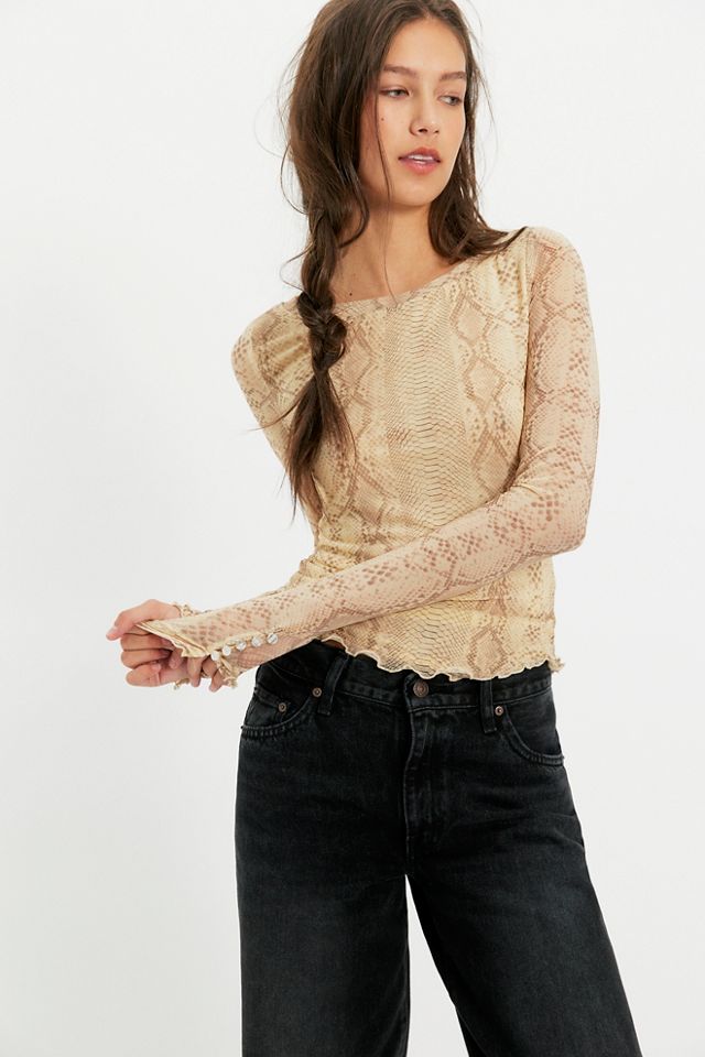 This bold top is a must-have for creating a standout look, featuring a classic boat neckline, edgy, semi-lined mesh fabrication, and a fitted silhouette for an elevated design.