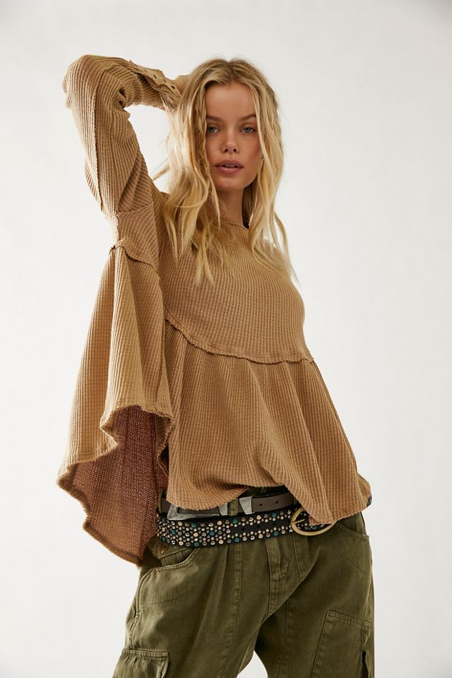 Just as effortless as it is essential, this babydoll-inspired top is featured in a relaxed, drapey fit and classic waffle-knit fabrication for an added touch of texture.