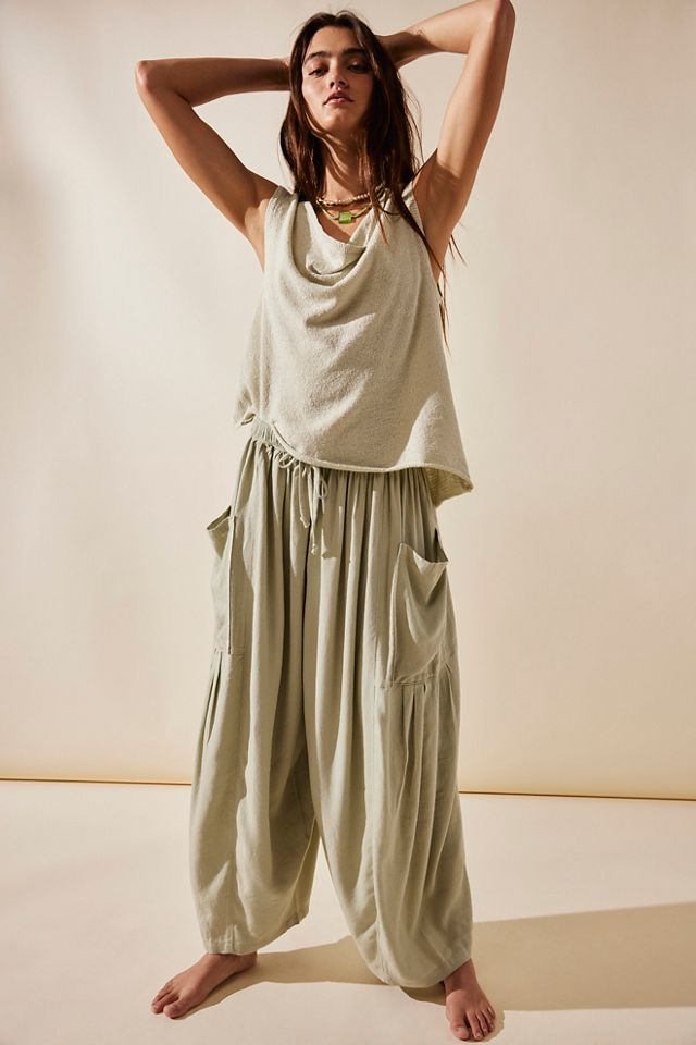 Your newest go-to summer pants from our free-est collection, featured in a billowy, harem-inspired silhouette with dropped side pockets for added dimension.