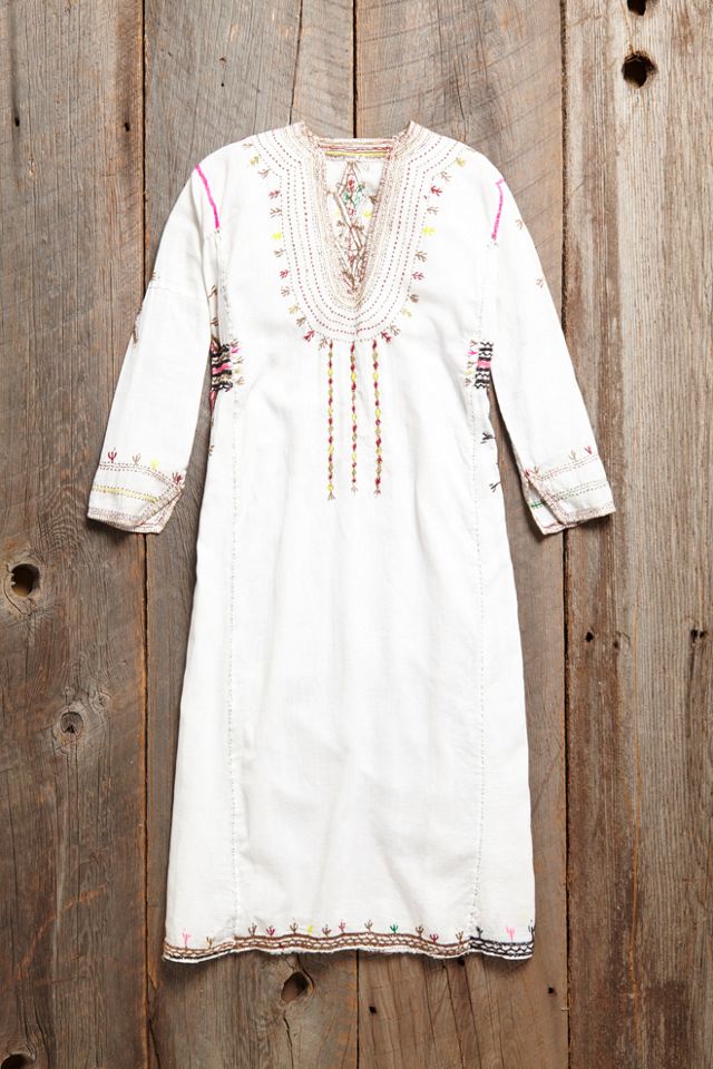 Rare, decorative embroidered dress with v-neck. Embroidery concentrated on the back and sides.