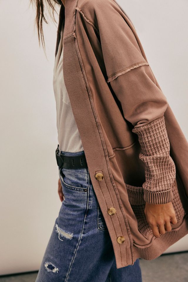 Just as effortless as it is essential, this cool and classic cardigan is featured in a slouchy, relaxed fit with textured piecing and defined seaming for a true lived-in look.
