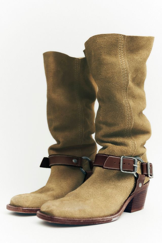 These western boots are the epitome of We The Free's heritage-inspired style, featuring a square toe, split leather fabrication, and spur-inspired buckled straps.