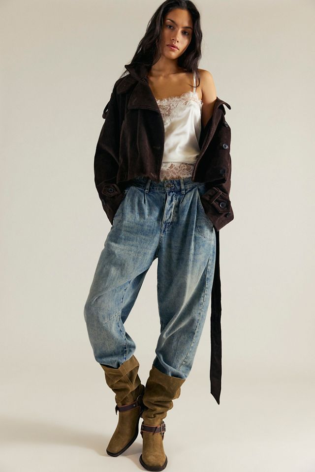 Perfectly baggy for a laidback look, these slouchy jeans from We The Free feature pleated details and slightly tapered legs for endless comfy styling.