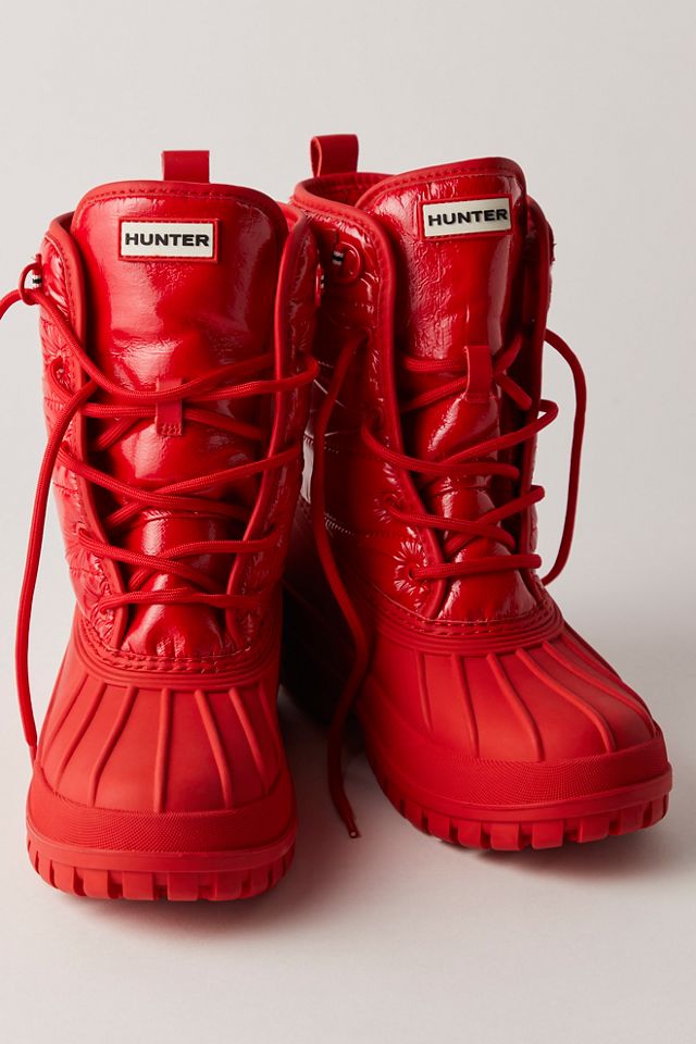 Take statement steps through any storm in these duck boots from Hunter, featuring high-shine puffer uppers that insulate your foot for endless warmth and style on any inclement day.
